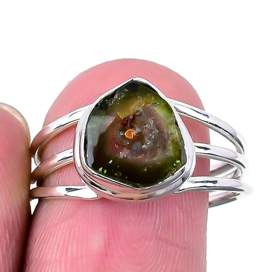 Moldavite Gemstone Wife Statement Engagement Ring Jewelry 925Ā SolidĀ Silver US 8