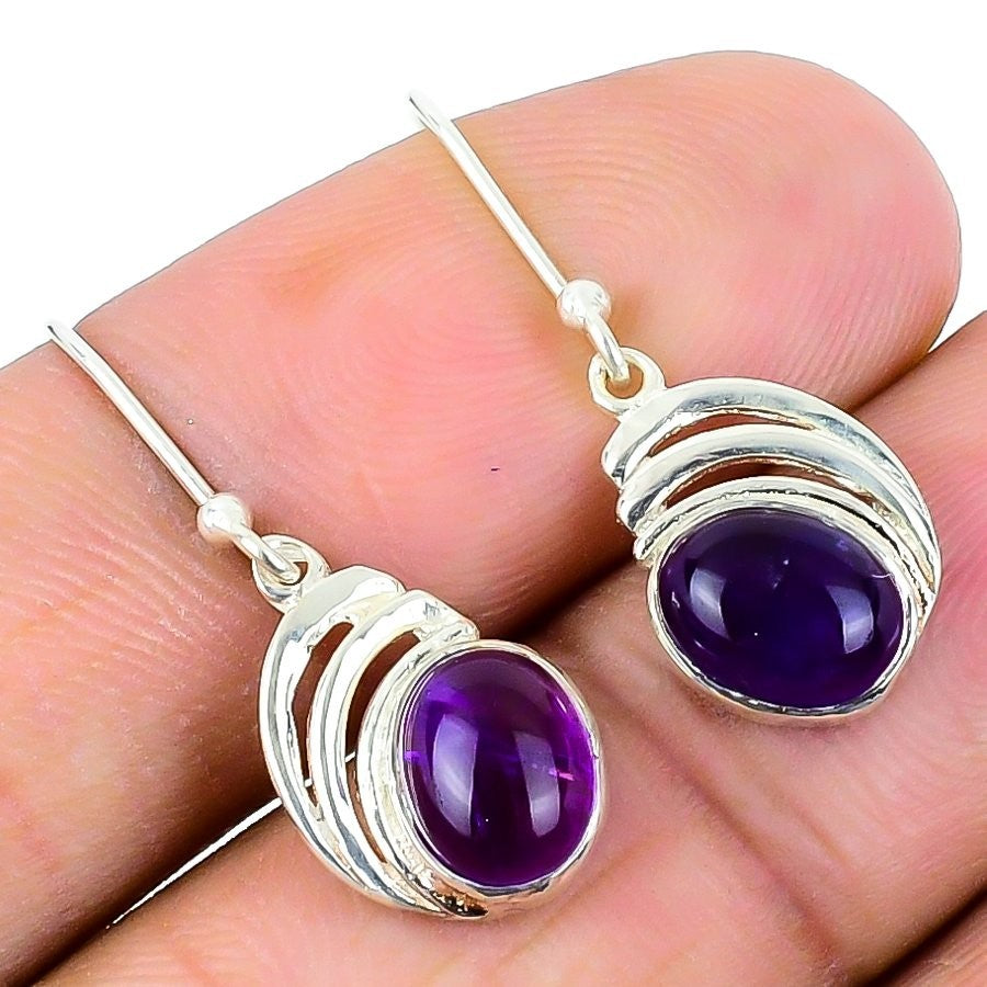 Sage Amethyst Stone Solid Sterling Silver Anniversary Dangling Earrings Jewelry