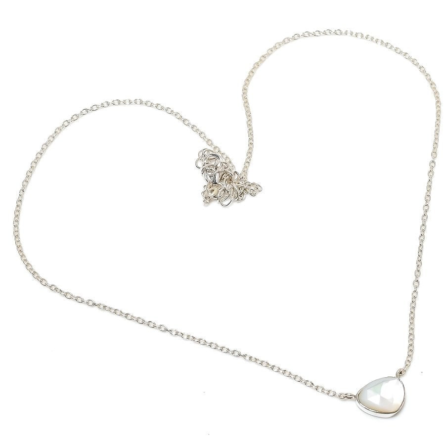 White Monalisa Stone 925 Sterling Silver Handcrafted New Chain Daughter Necklace