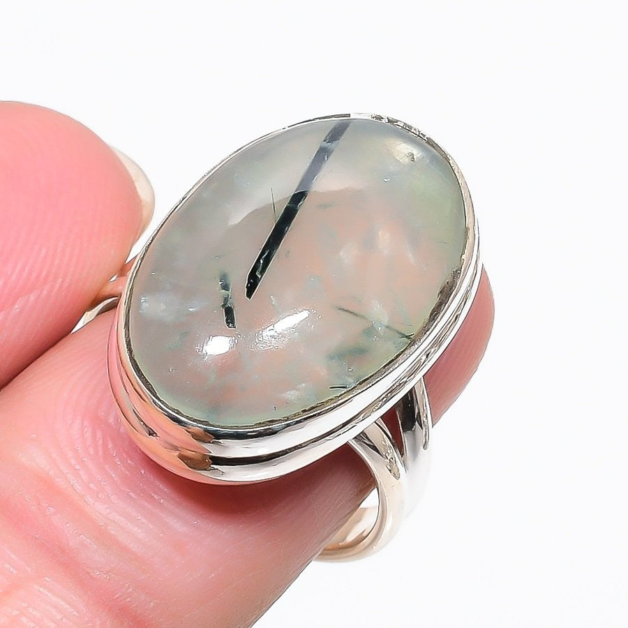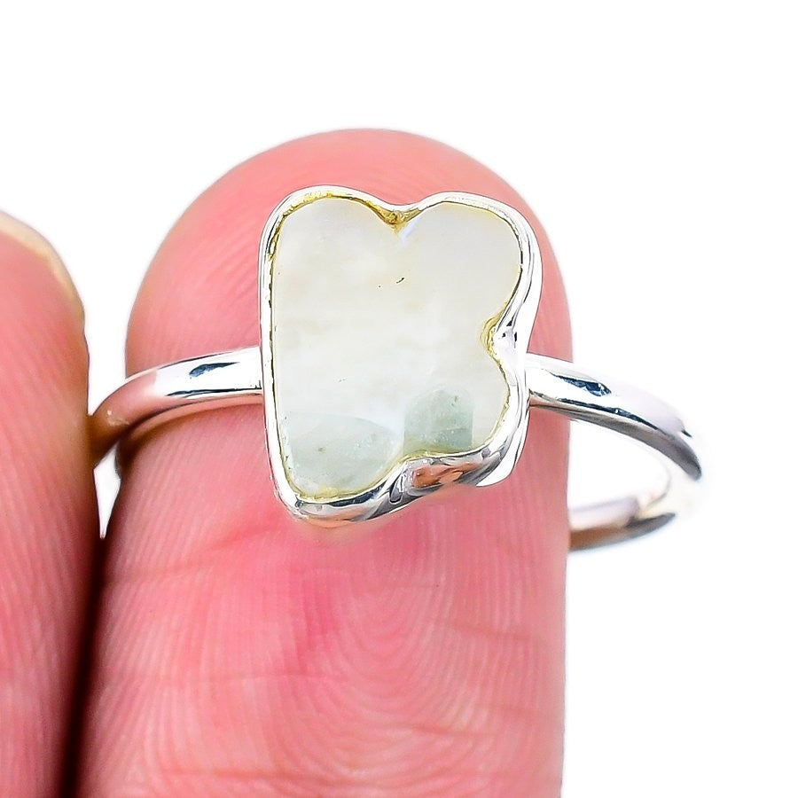 Prehnite Gemstone Artisan Wedding Statement Ethnic Ring Sterling Silver US 8.5