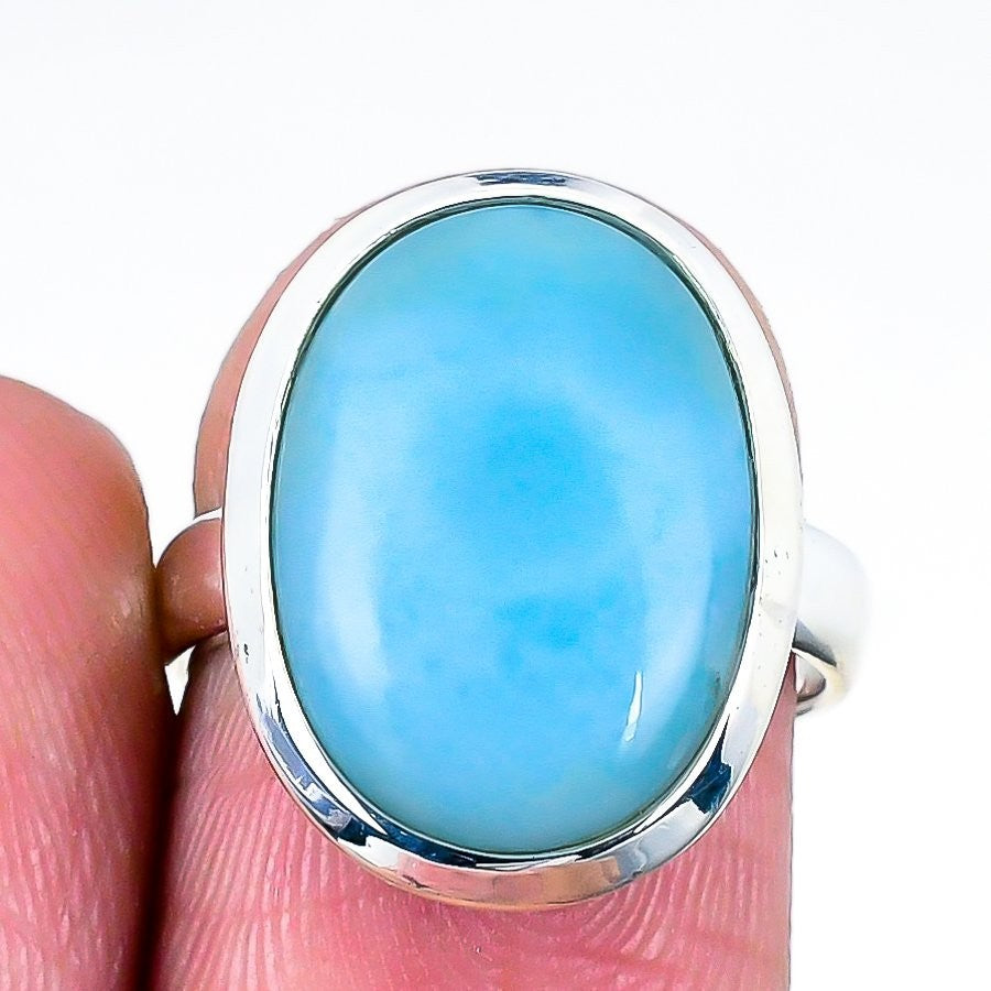 Republic Larimar Gemstone Band Birthday Ring Jewelry Size 6.5 925Ā SolidĀ Silver