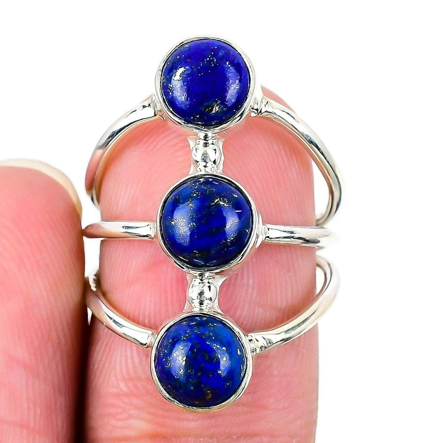 Lapis Lazuli Gemstone Sterling Silver Engagement Unique Statement Ring Size 7