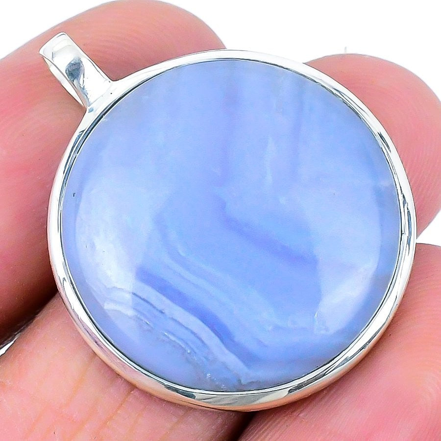 Blue Lace Agate Gemstone Solid Silver Best Daughters Gift Trendy Pendant Jewelry