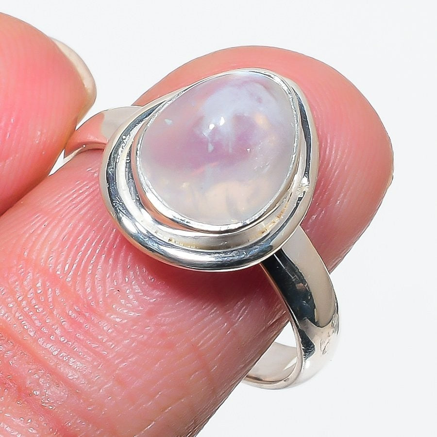 Rose Quartz Gemstone 925Ā SolidĀ Silver Wedding Statement Heart Chakra Ring Size 7