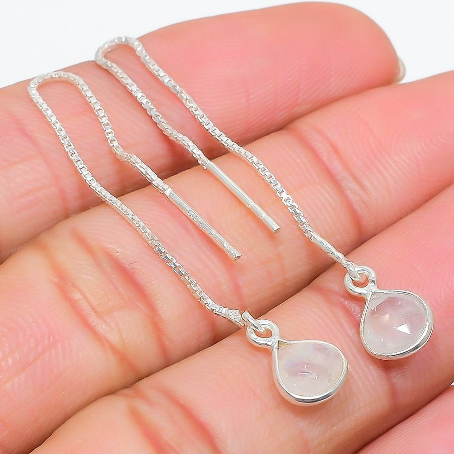 Natural Rainbow Moonstone Solid Sterling Silver Mother Dangling Earrings Jewelry