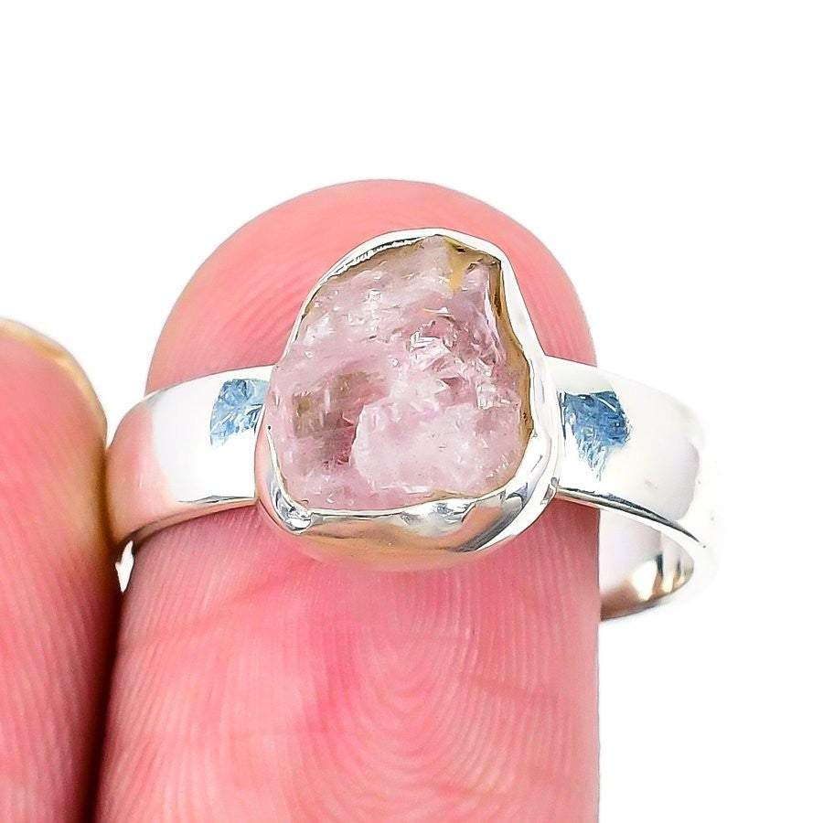 Natural Pink Kunzite Wedding Statement Artisan Elegant Ring Solid Silver US 10