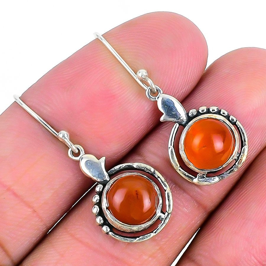 Orange Carnelian Stone Birthday Dangle Drop Sacral Chakra Earrings Solid Silver