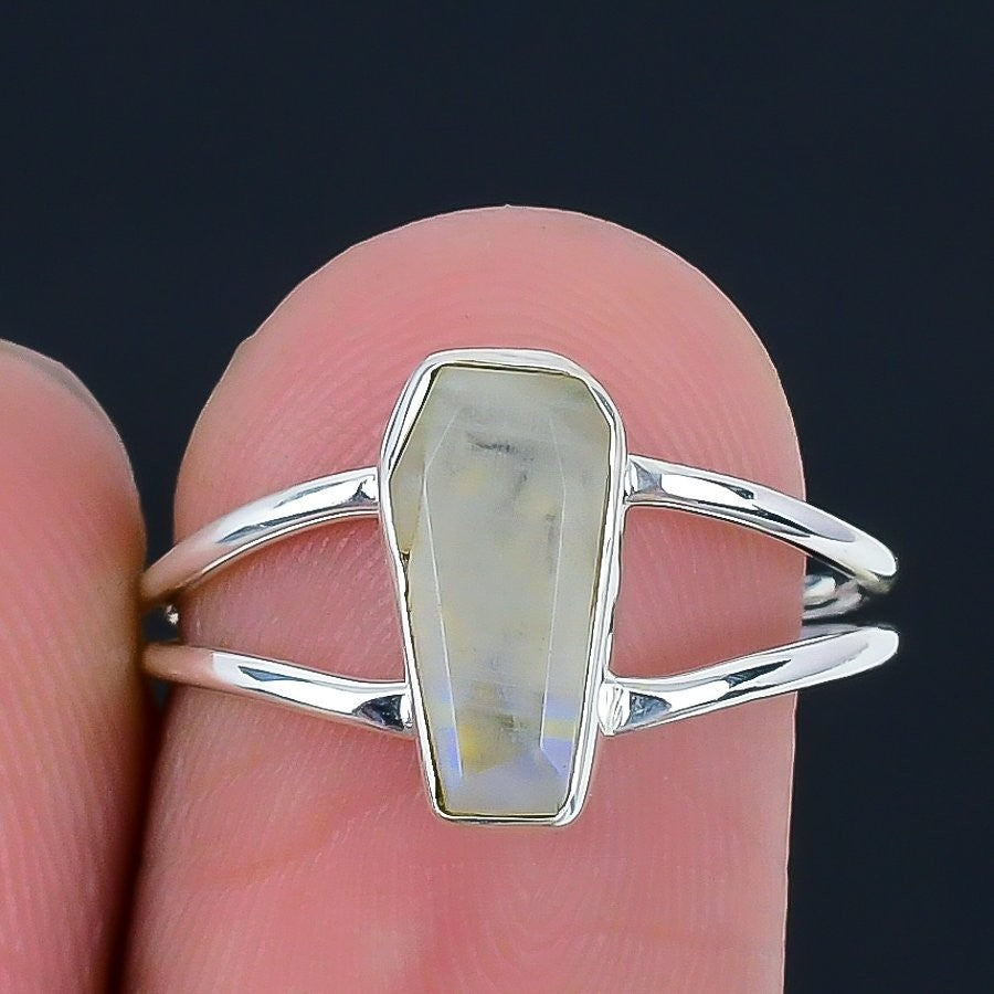 Rainbow Moonstone Gemstone Statement Daughter Gift Ring 925Ā SolidĀ Silver US 7.5