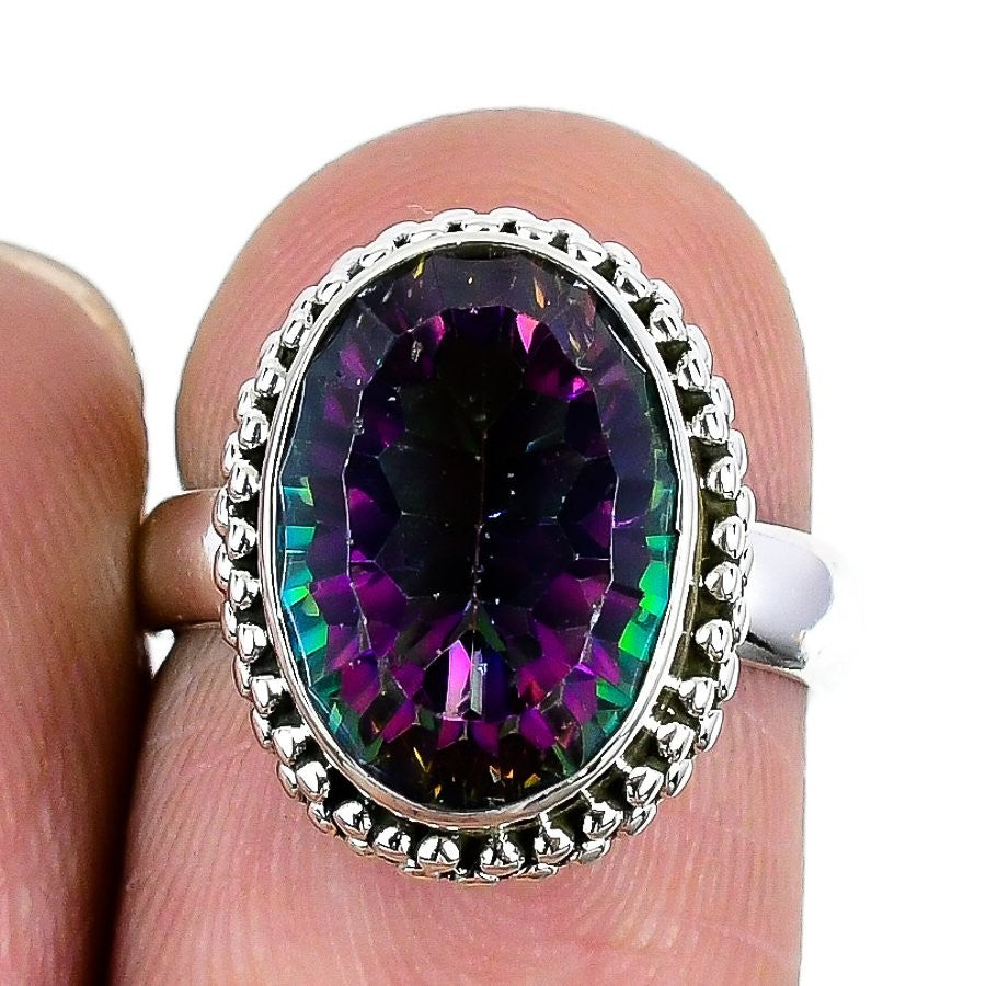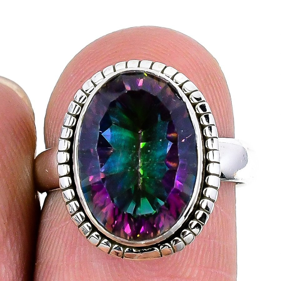 Mystic Topaz Gemstone Daughter Statement Handcrafted Ring Sterling Silver US 6