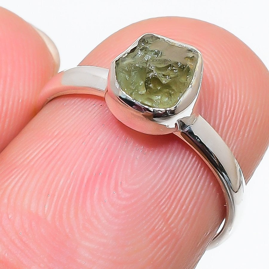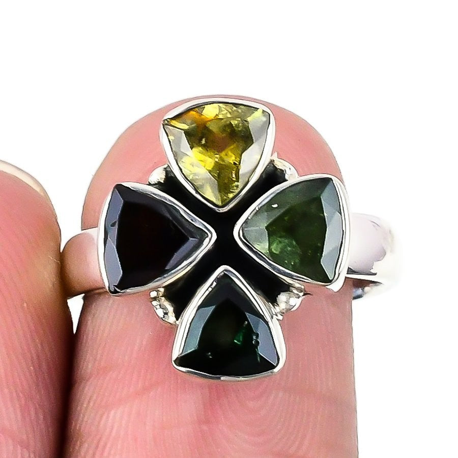 Moldavite Gemstone 925 Sterling Silver Handcrafted Cluster Elegant Daughter Ring