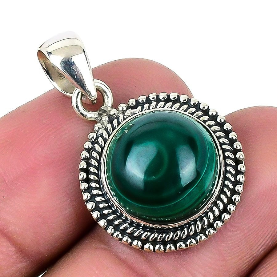 Malachite Stone Sterling Silver Heart Chakra Elegant Engagement Sister Pendant