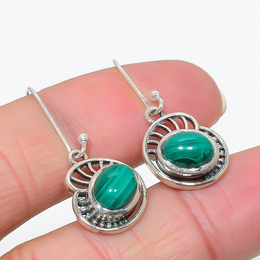 Malachite Stone Art Deco Birthday Dangle Daughter Gift Boho Earrings 925 Silver