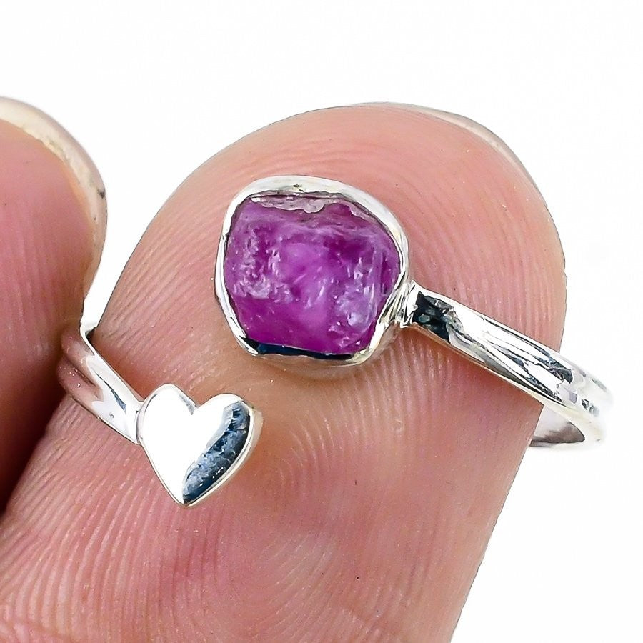 Heart Chakra Natural Pink Tourmaline 925Ā SolidĀ Silver Statement Unique Ring US 8