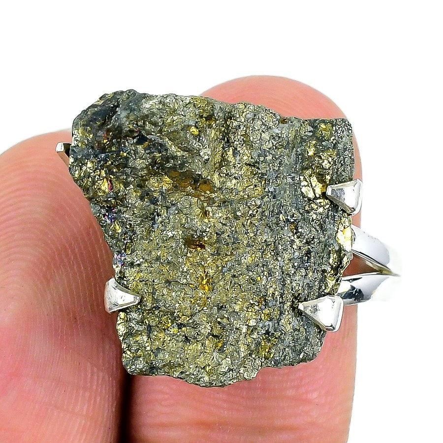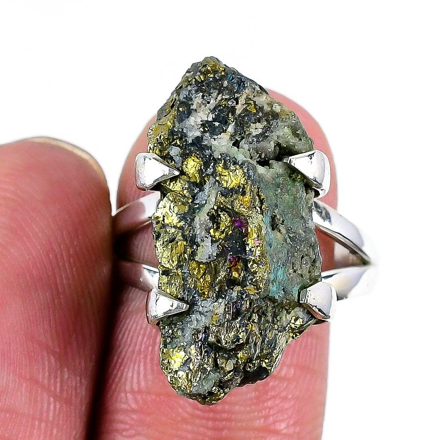 Pyrite Druzy Gemstone Solid Sterling Silver Ethnic Statement Ring Jewelry Size 9