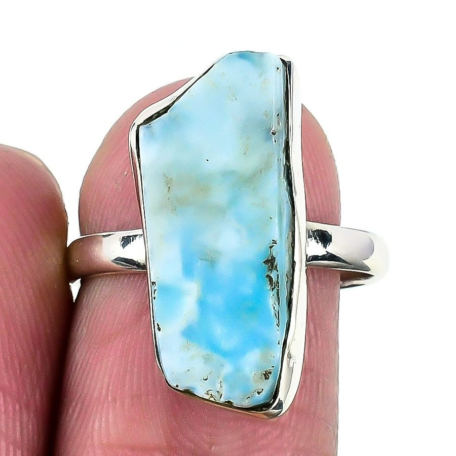Caribbean Larimar Gemstone 925Ā SolidĀ Silver Statement Trendy Ring Jewelry Size 8