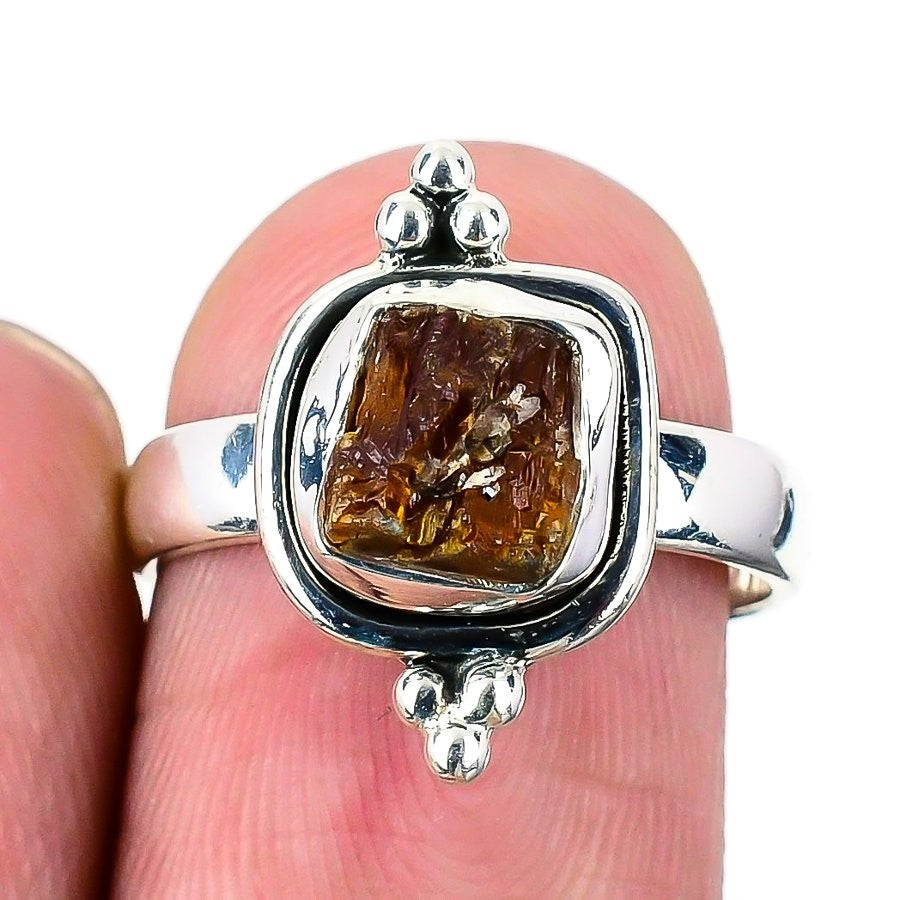 Natural Imperial Topaz 925 Silver Handcrafted Statement Unique Wife Ring US 6.5