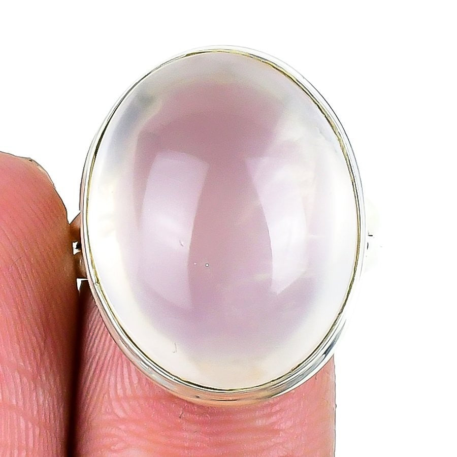 Rose Quartz Stone Solid Sterling Silver Statement Daughters Day Wife Ring Size 8