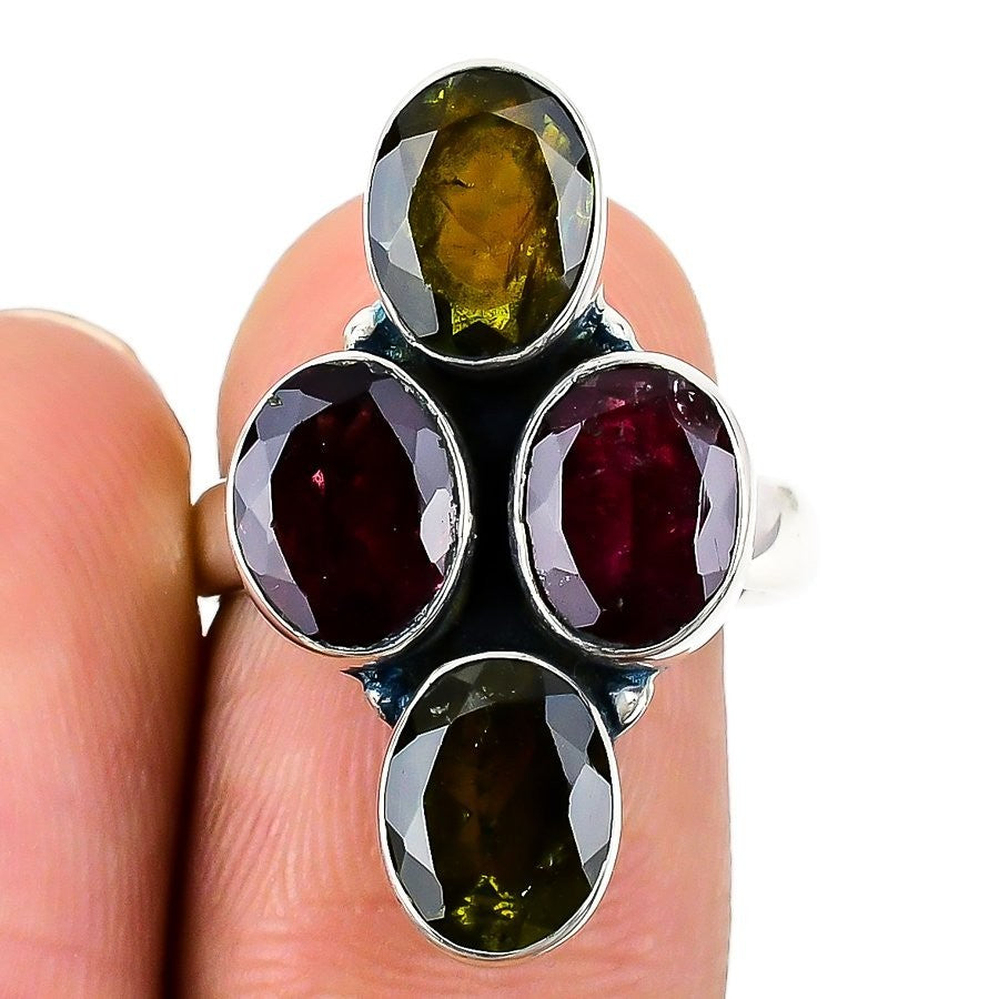 Heart Chakra Green Tourmaline Gemstone 925 Sterling Silver Statement Ring US 7