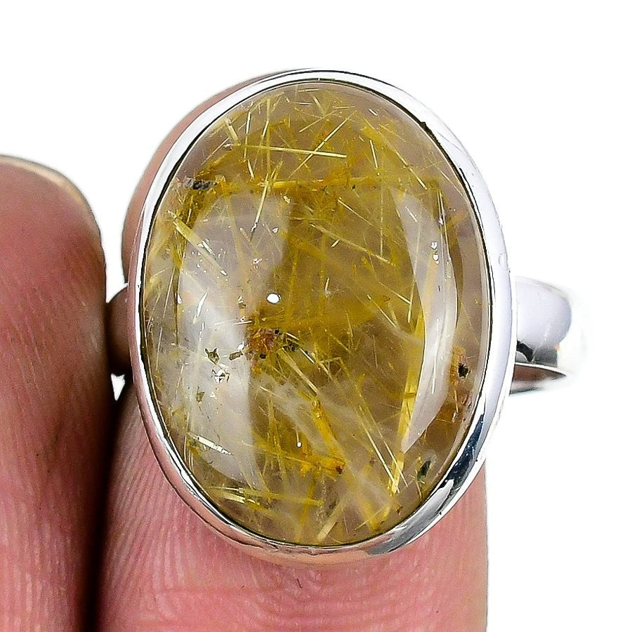 Golden Rutile Gemstone New Statement Ring Jewelry Size 9.5 Solid Sterling Silver
