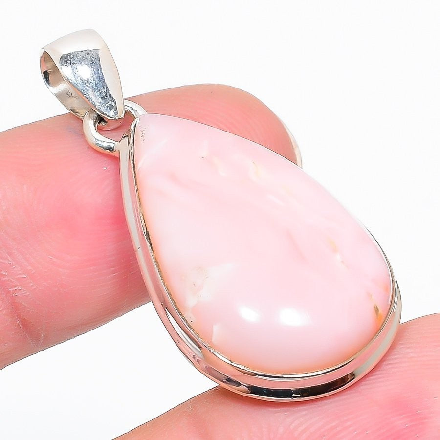 Pink Opal Stone Solid Silver Birthday Mother Wedding Handcrafted Artisan Pendant