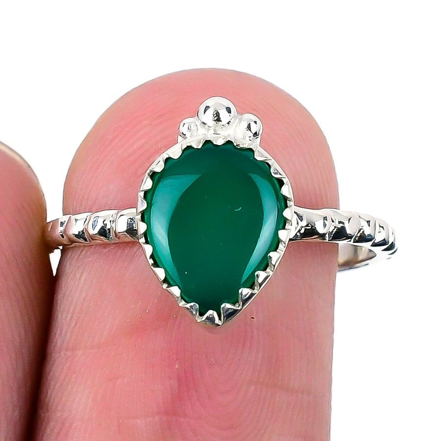Natural Green Onyx Ethnic Statement Boho Ring Jewelry Size 8 925 Sterling Silver