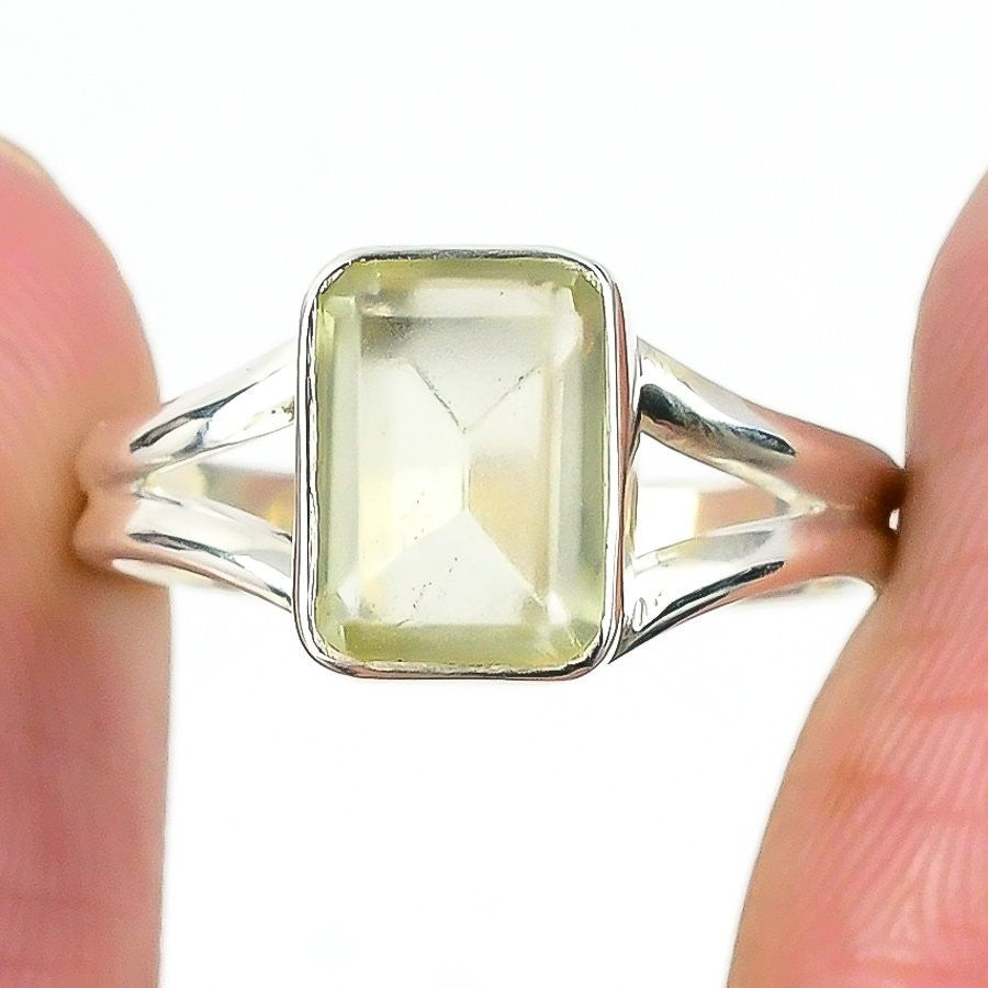 Natural Green Amethyst 925 Silver Engagement Boho Statement Mother Ring Jewelry