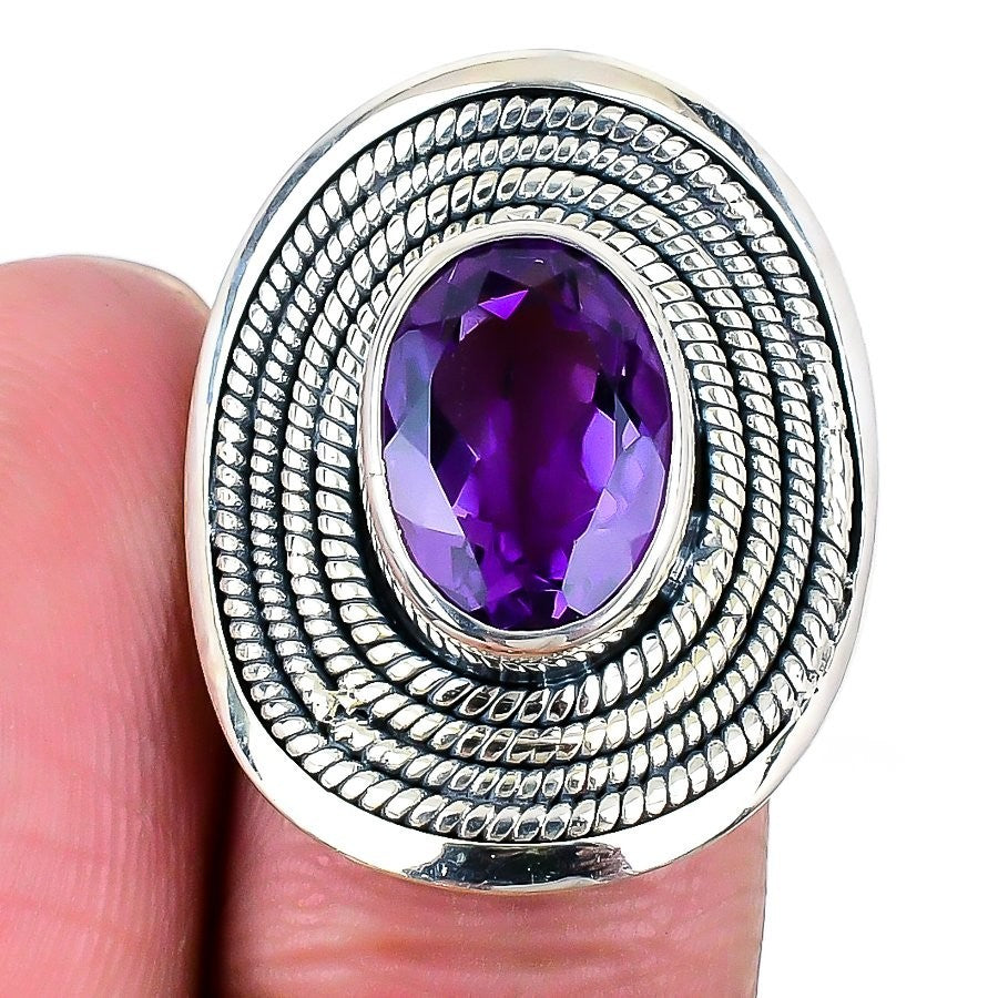 Amethyst Gemstone Solid Silver Daughter Statement Crown Chakra Ring Jewelry US 7