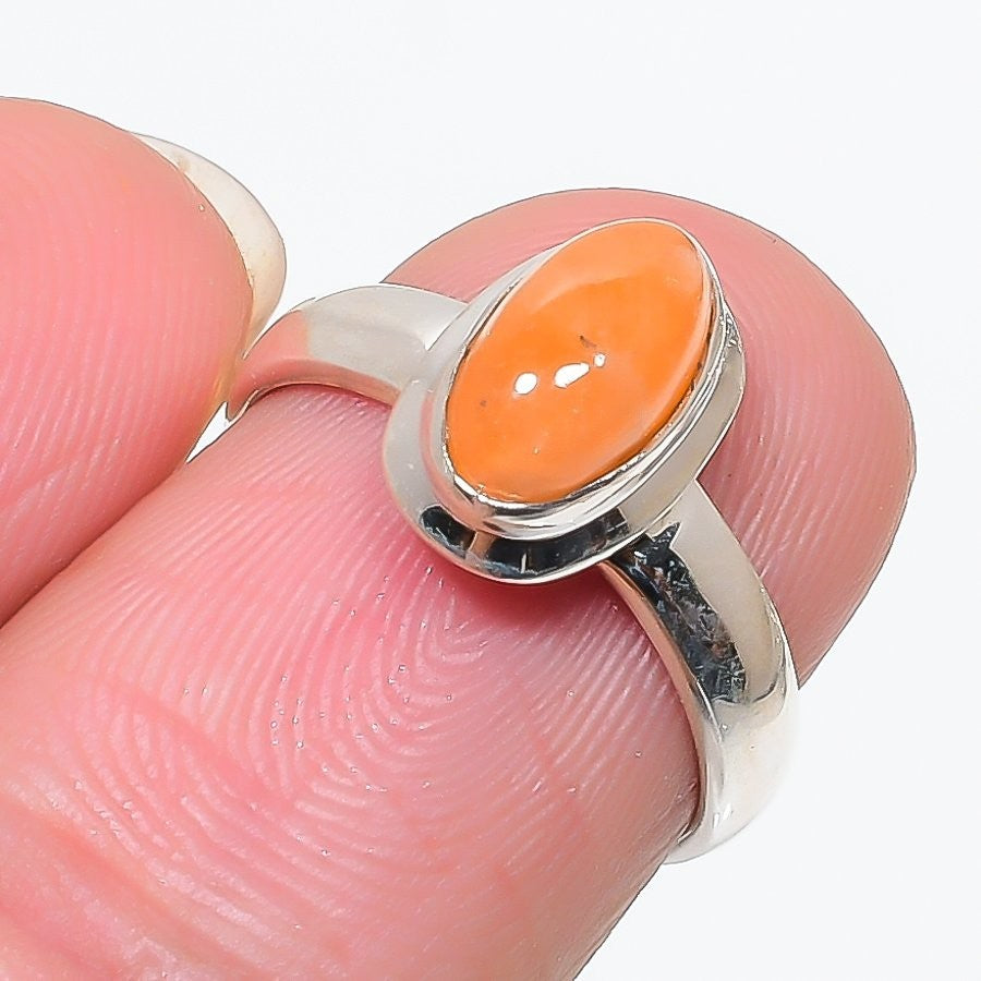 Orange Spiny Oyster Gemstone Solid Sterling Silver Cluster Handmade Ring Size 6