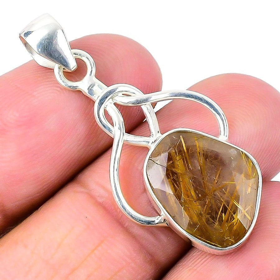 Daughters Day Sale Golden Rutile Stone Solid Sterling Silver Elegant New Pendant