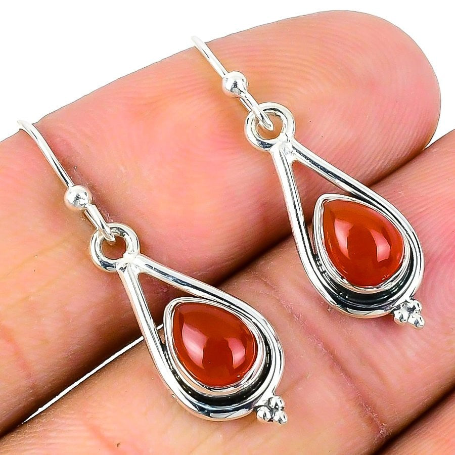 Natural Orange Carnelian Sterling Silver Dangling Daughter Gift Earrings Jewelry