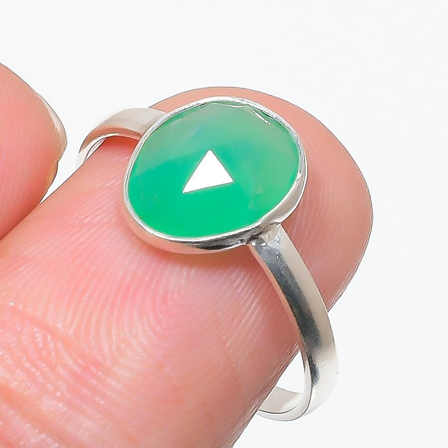 Green Chalcedony Gemstone Cluster Daughter Gift Ring Jewelry 925 Sterling Silver