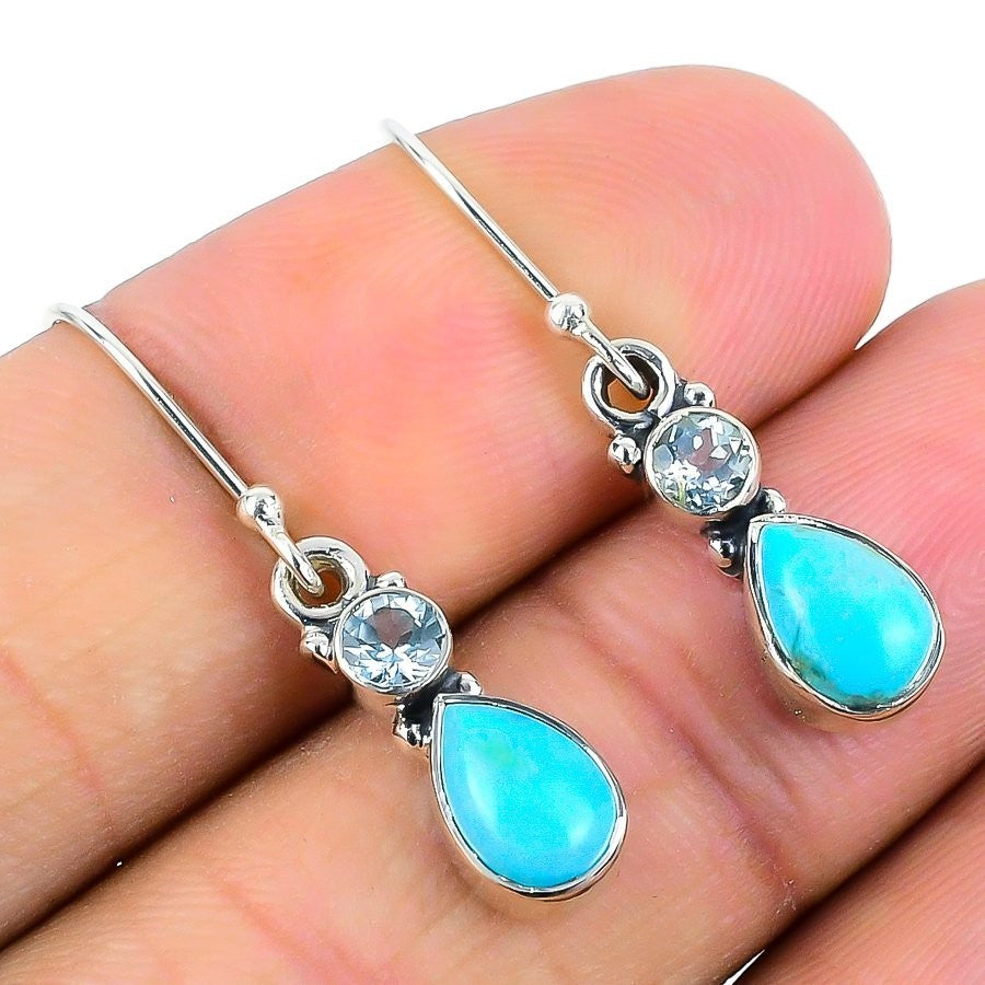 Sleeping Turquoise Stone 925 Solid Silver Birthday Drop New Daughter Earrings