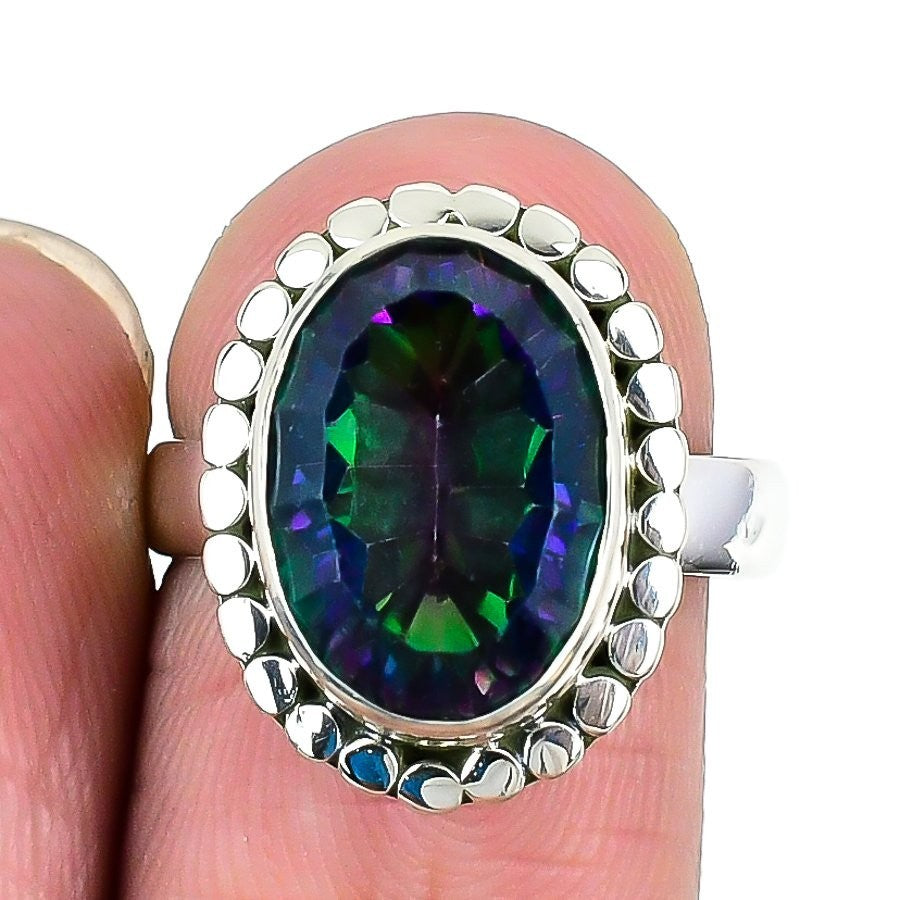 Mystic Topaz Gemstone Sterling Silver Sister Statement Bezel Ring Jewelry Size 7