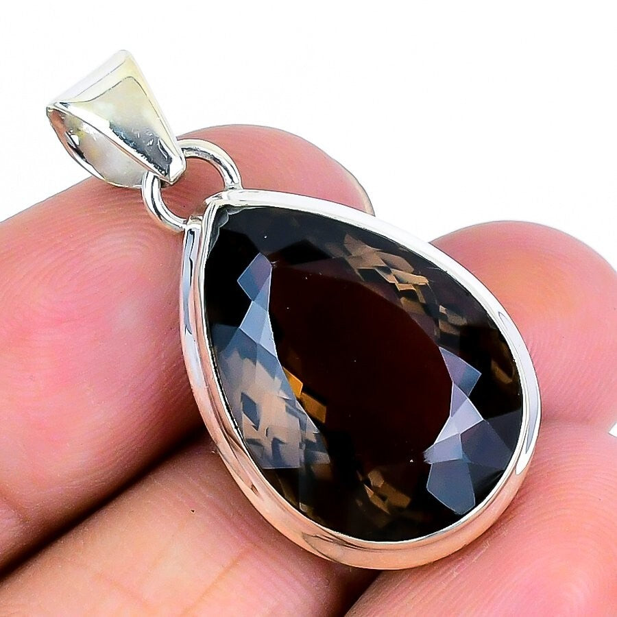 Smoky Topaz Gemstone Sterling Silver Anniversary Birthday Unique Wedding Pendant
