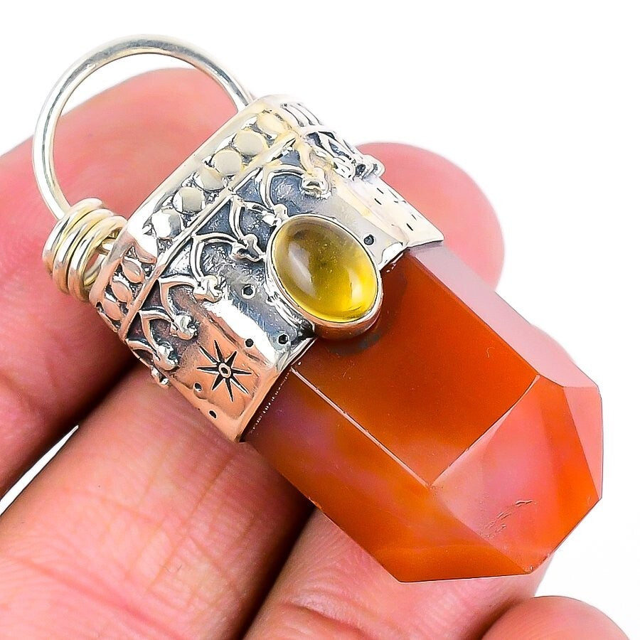 Sacral Chakra Orange Carnelian Gemstone Solid Sterling Silver Wife Boho Pendant