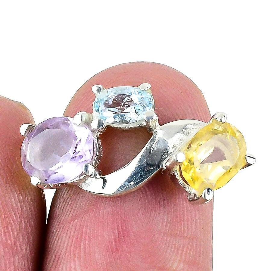 Natural Multi Tourmaline Mother Artisan Statement Ring Jewelry Size 6 925 Silver