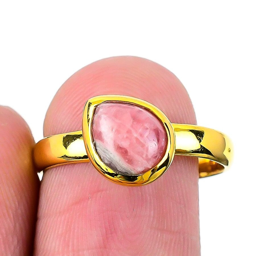 Rhodochrosite Stone 925 Sterling Silver Statement Anniversary Boho Ring Size 7