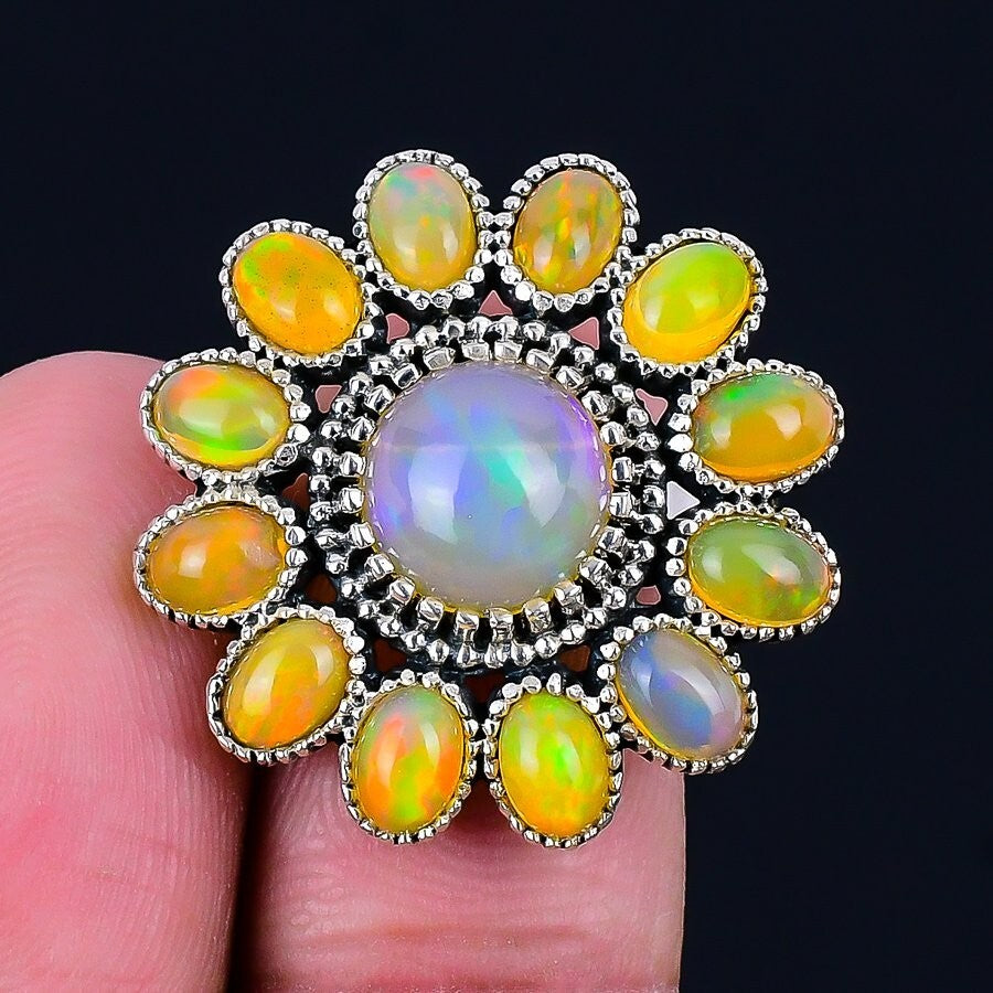Ethiopian Opal Gemstone Solid Sterling Silver Statement Anniversary Ring US 7.5