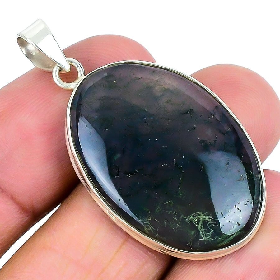 Natural Moss Agate 925 Silver Elegant Handcrafted Mothers day Pendant Jewelry