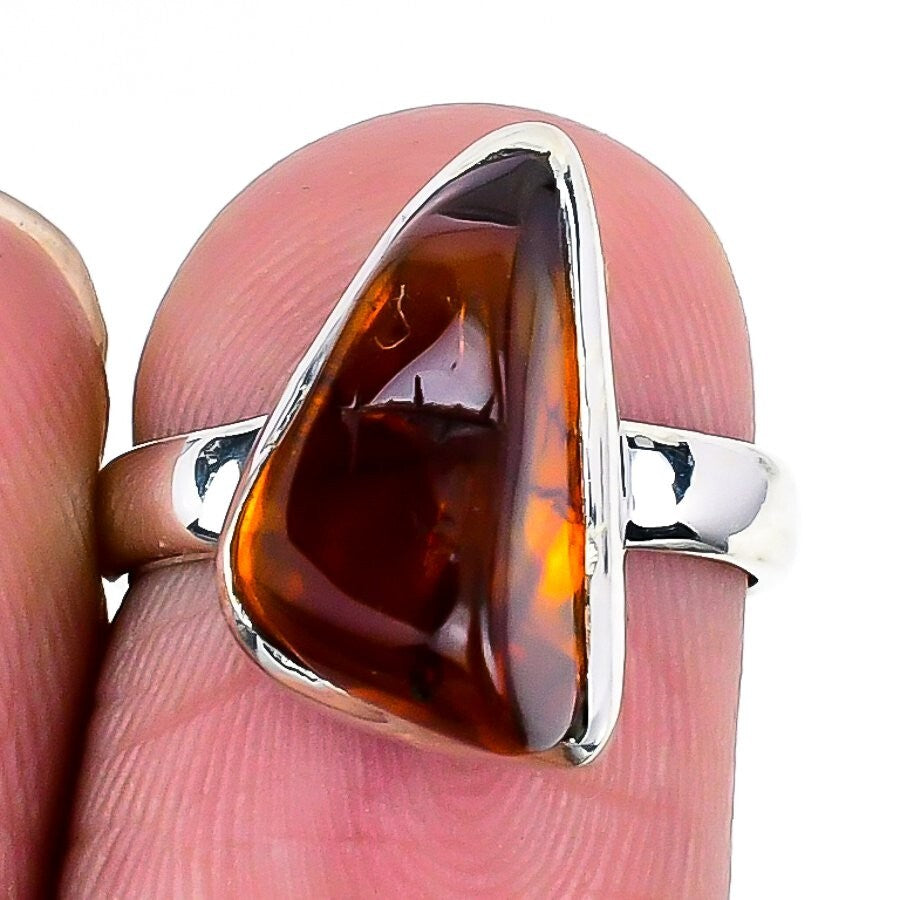Baltic Amber Gemstone Sterling Silver Channel Set Statement Elegant Ring US 5.5
