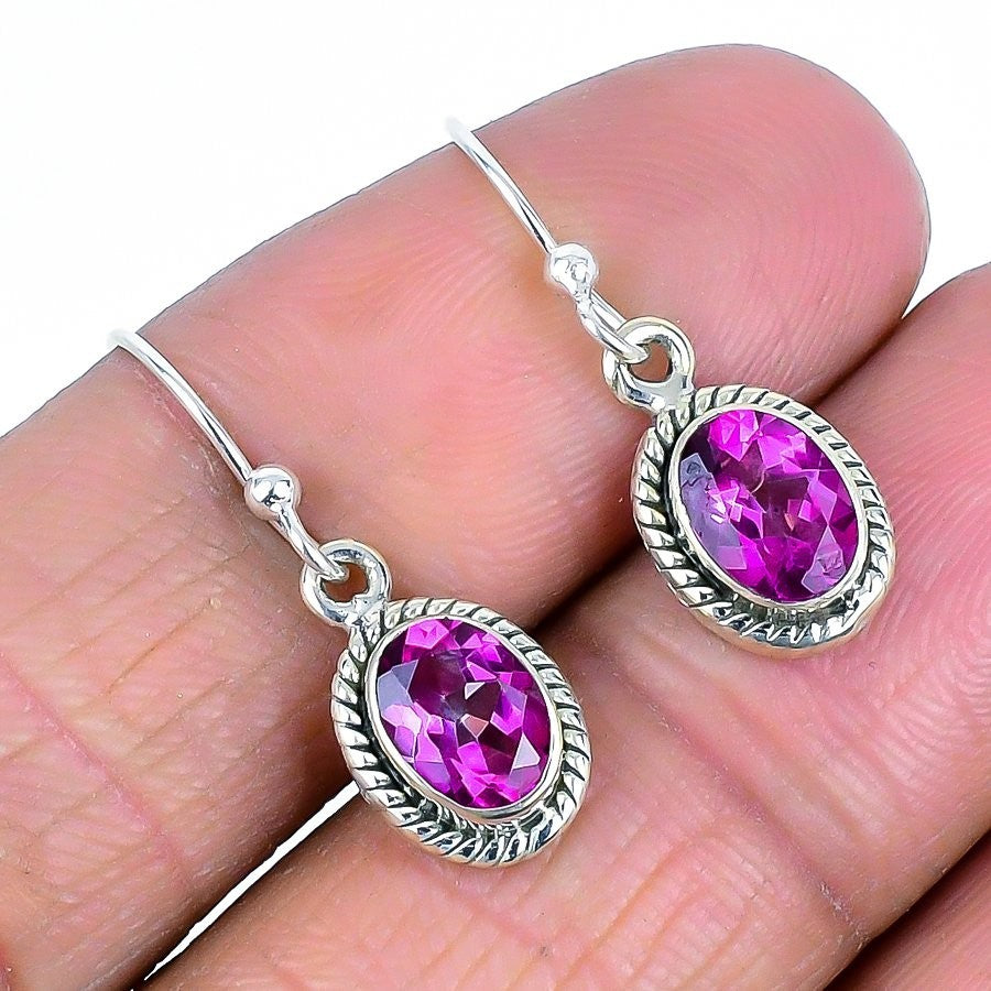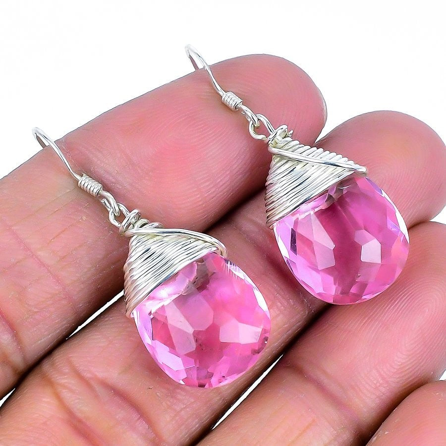 Natural Pink Topaz Solid Silver Handcrafted Dangle Drop Daughters Day Earrings