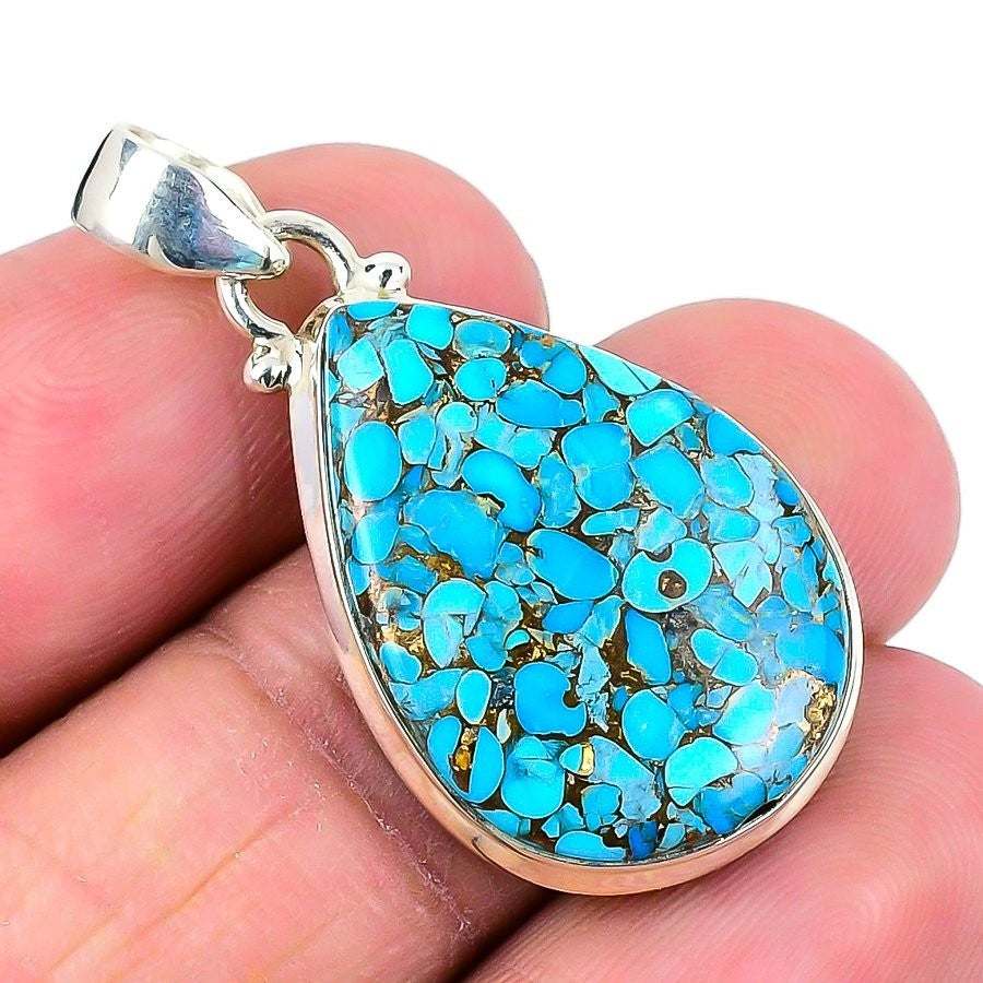 Natural Copper Blue Turquoise 925 Sterling Silver Anniversary Handmade Pendant