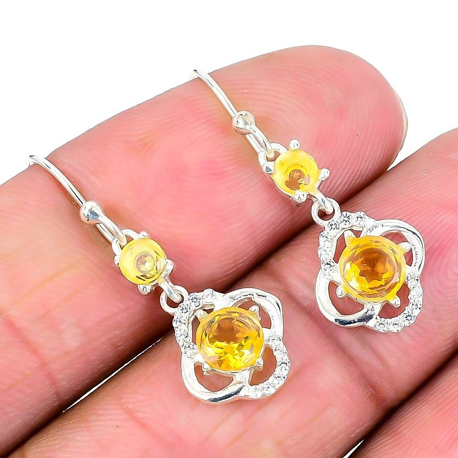 November Birth Citrine Gemstone 925Ā SolidĀ Silver Dangle Hook Earrings Jewelry