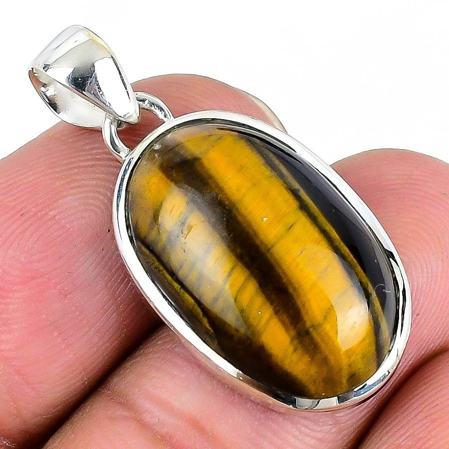 Tiger Eye Gemstone 925 Sterling Silver Bezel Anniversary Trendy Pendant Jewelry