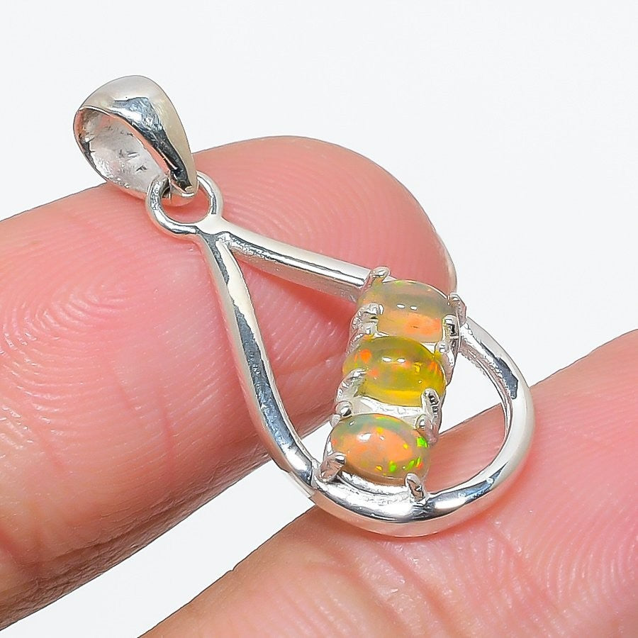 Ethiopian Opal Gemstone 925Ā SolidĀ Silver Daughter Gift Art Deco Artisan Pendant