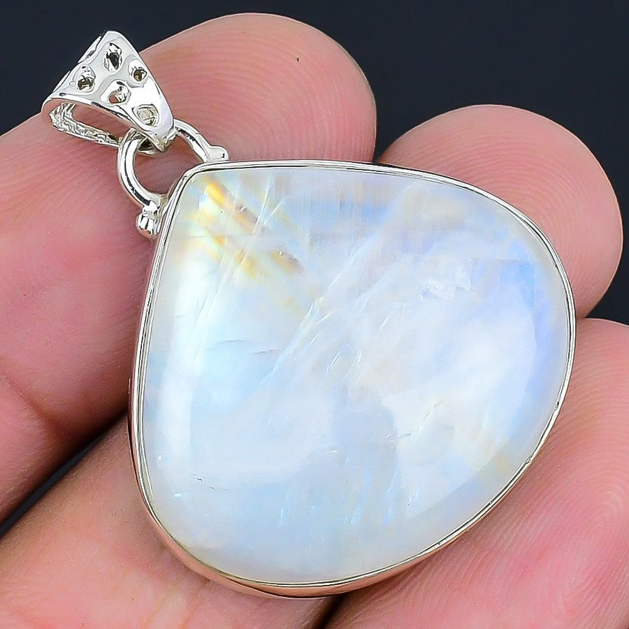 Moonstone Stone Solid Silver Channel Set Daughter Handmade Birthday Boho Pendant