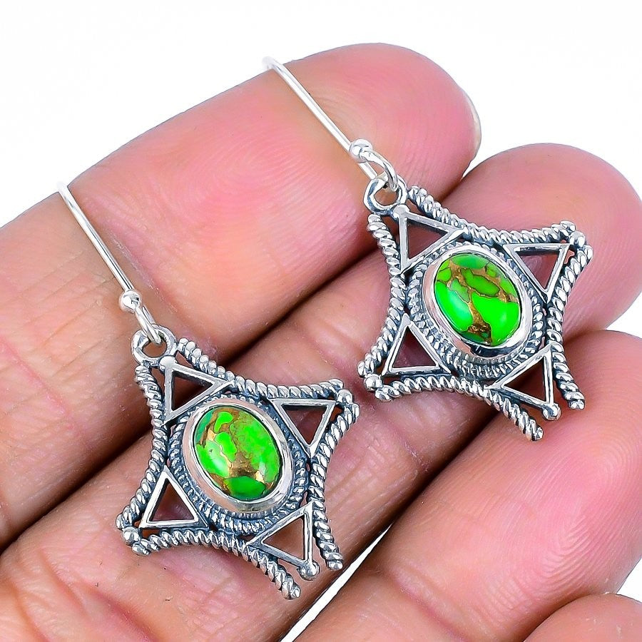 Copper Green Turquoise Stone Daughters Day Drop Earrings Jewelry Solid Silver