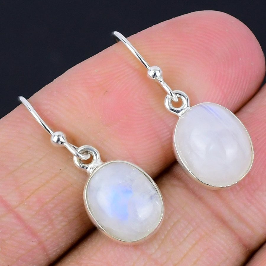 Natural Rainbow Moonstone Dangling Daughter Gift Earrings Jewelry Solid Silver