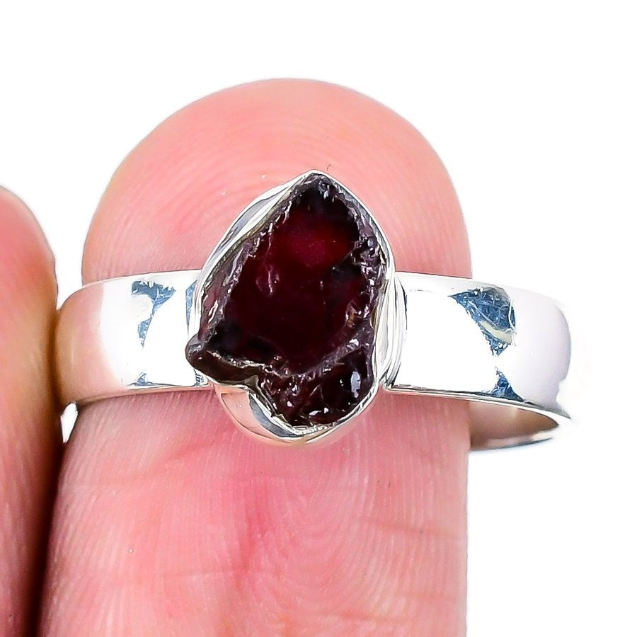 Root Chakra Garnet Rough Stone Sister Statement Wedding Ring Solid Silver US 10