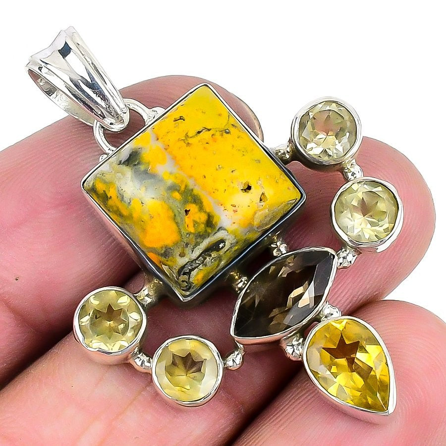Bumblebee Jasper Gemstone 925 Sterling Silver Wedding Sister Channel Set Pendant